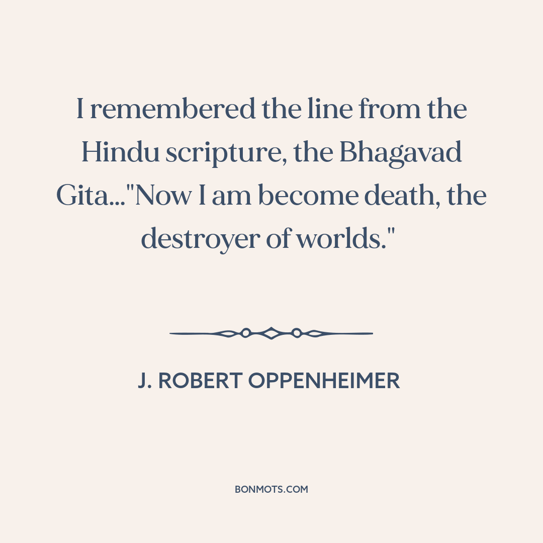 I remembered the line from the Hindu scripture, the Bhagavad Gita…"Now I am become death, the destroyer of worlds."