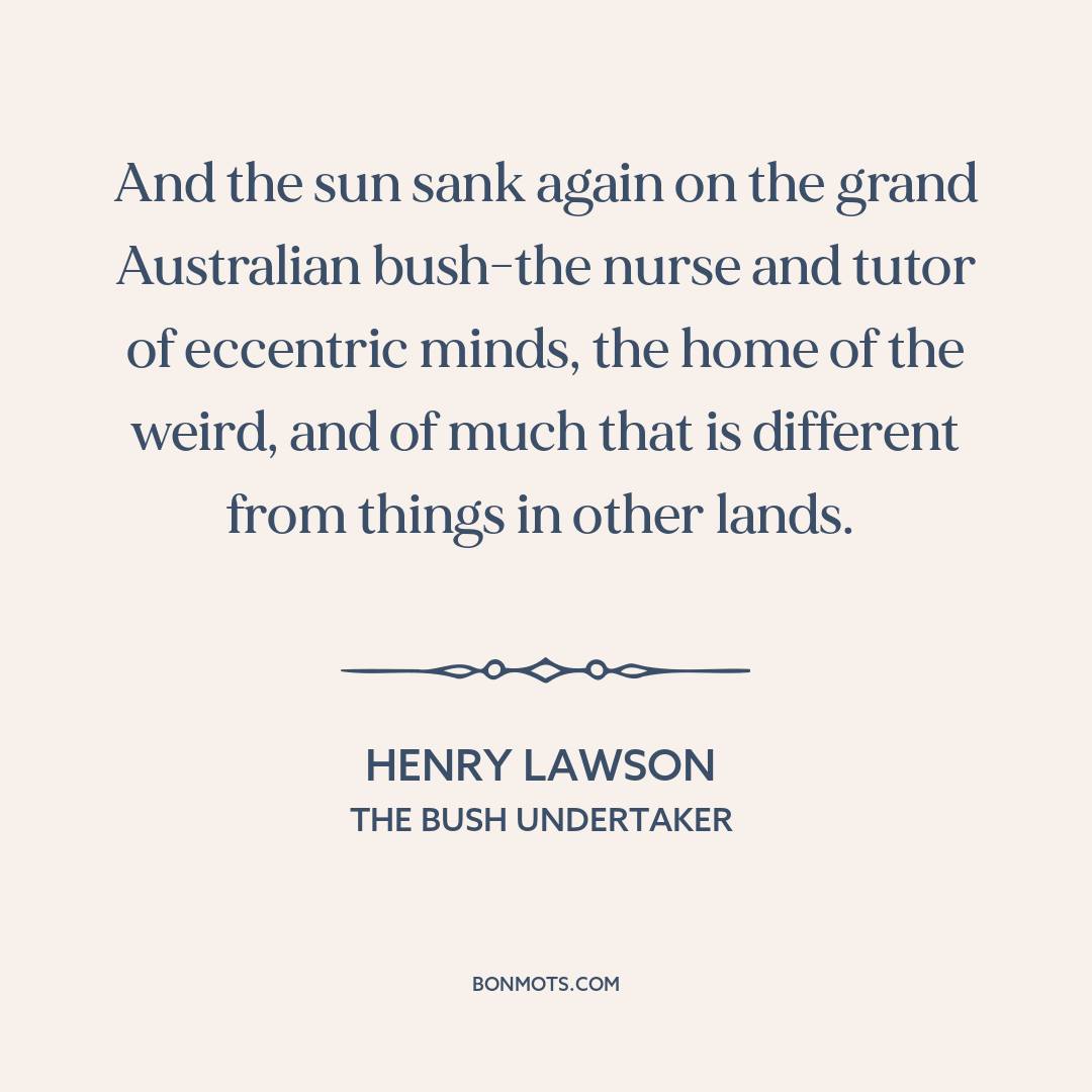 And the sun sank again on the grand Australian bush-the nurse and tutor of eccentric minds, the home of the weird, and of much that is different from things in other lands.