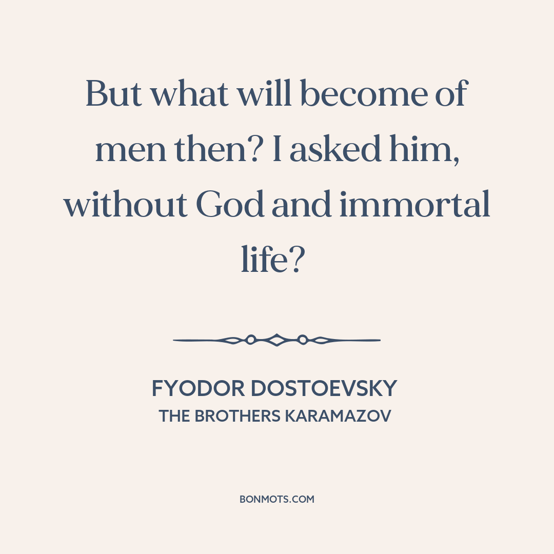 But what will become of men then? I asked him, without God and immortal life?