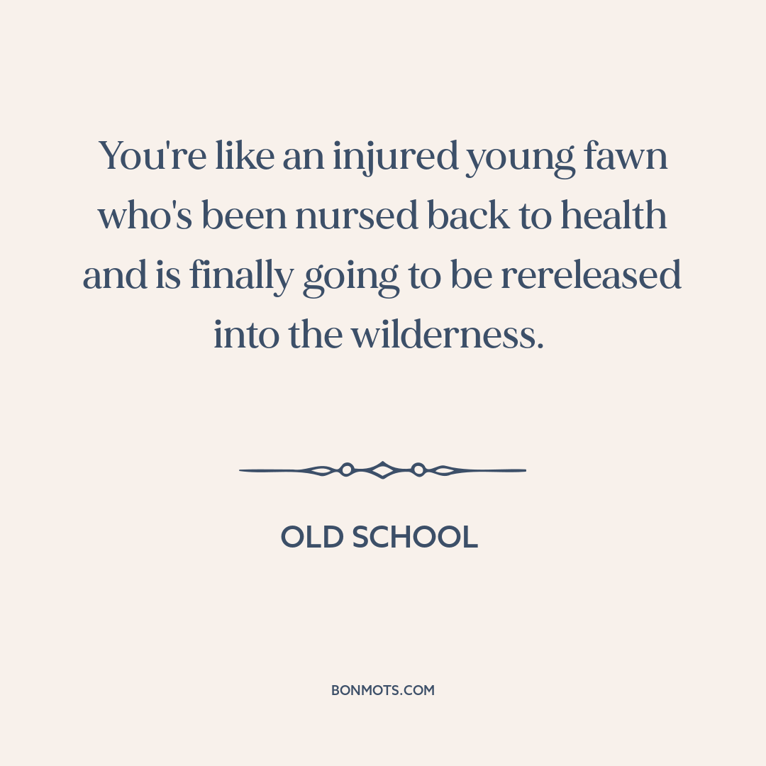 You're like an injured young fawn who's been nursed back to health and is finally going to be rereleased into the wilderness.