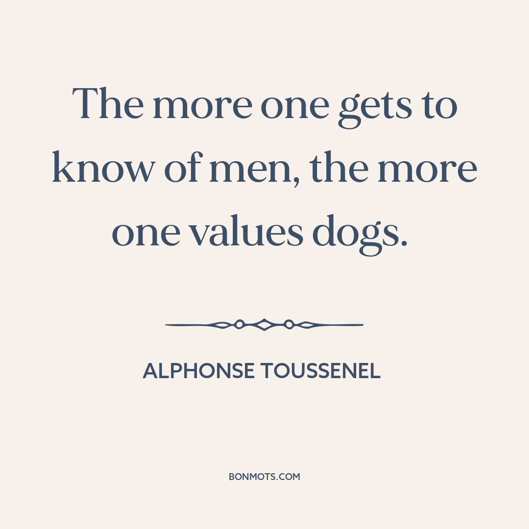 The more one gets to know of men, the more one values dogs.