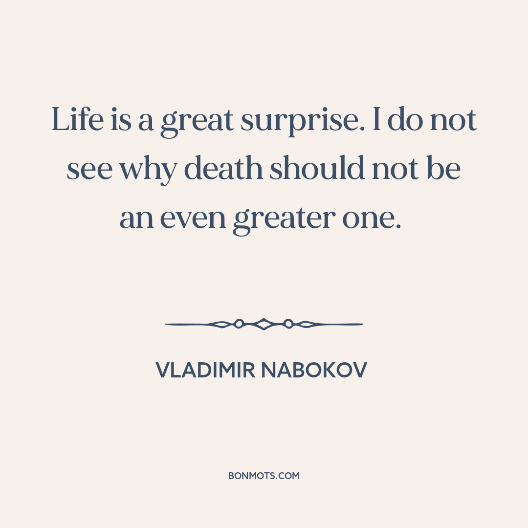 Life is a great surprise. I do not see why death should not be an even greater one.