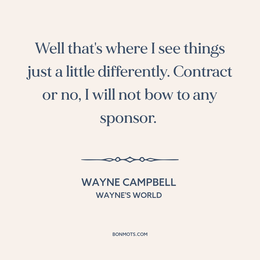 Well that's where I see things just a little differently. Contract or no, I will not bow to any sponsor.
