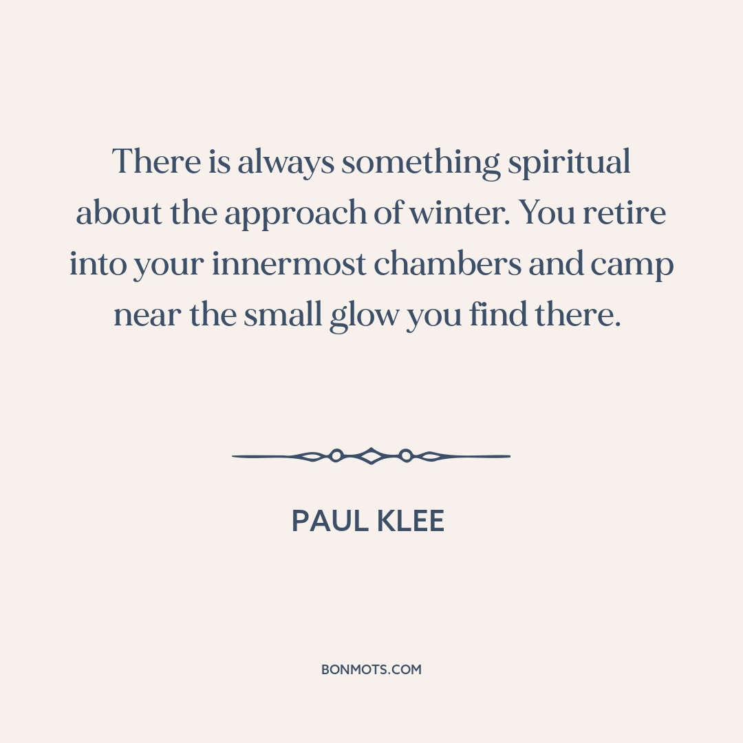 There is always something spiritual about the approach of winter. You retire into your innermost chambers and camp near the small glow you find there.