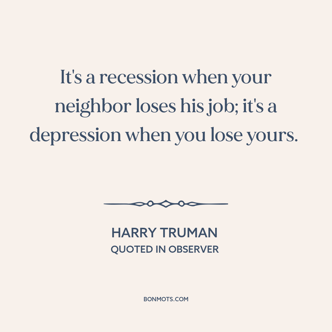 It's a recession when your neighbor loses his job; it's a depression when you lose yours.