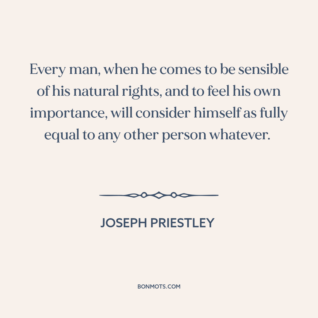 Every man, when he comes to be sensible of his natural rights, and to feel his own importance, will consider himself as fully equal to any other person whatever.