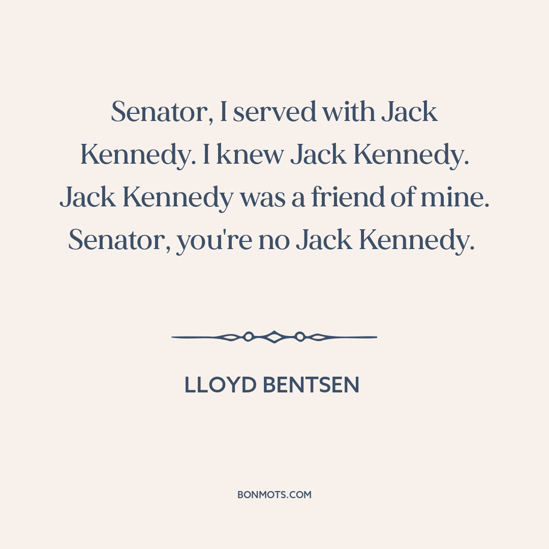 Senator, I served with Jack Kennedy. I knew Jack Kennedy. Jack Kennedy was a friend of mine. Senator, you're no Jack Kennedy.