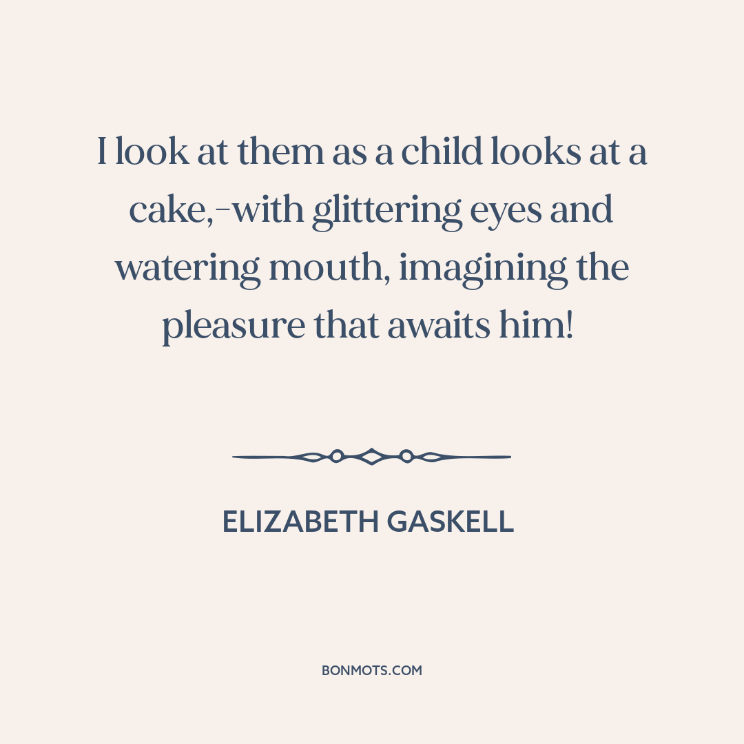 I look at them as a child looks at a cake,-with glittering eyes and watering mouth, imagining the pleasure that awaits him!