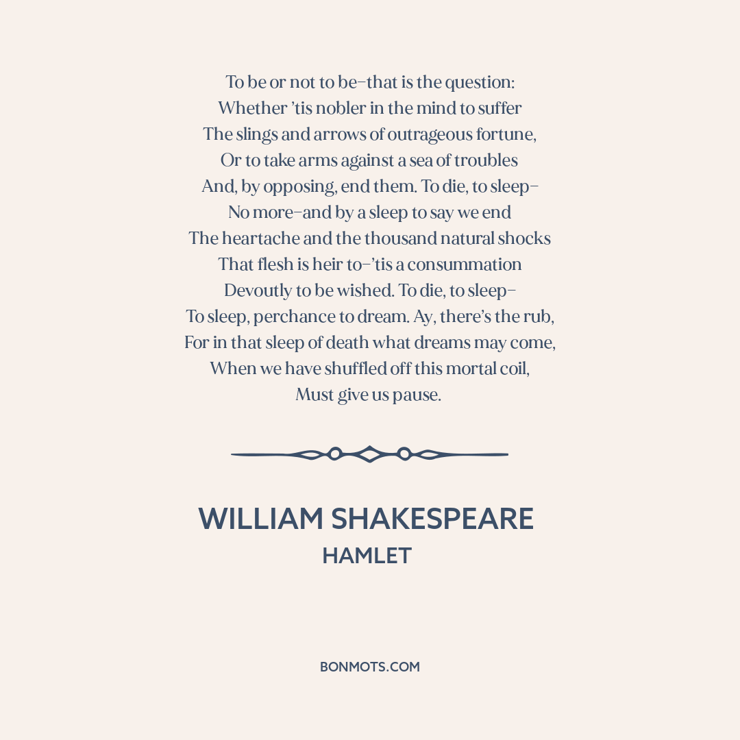 And, by opposing, end them. To die, to sleep—