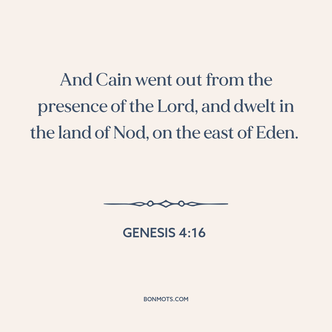 And Cain went out from the presence of the Lord, and dwelt in the land of Nod, on the east of Eden.