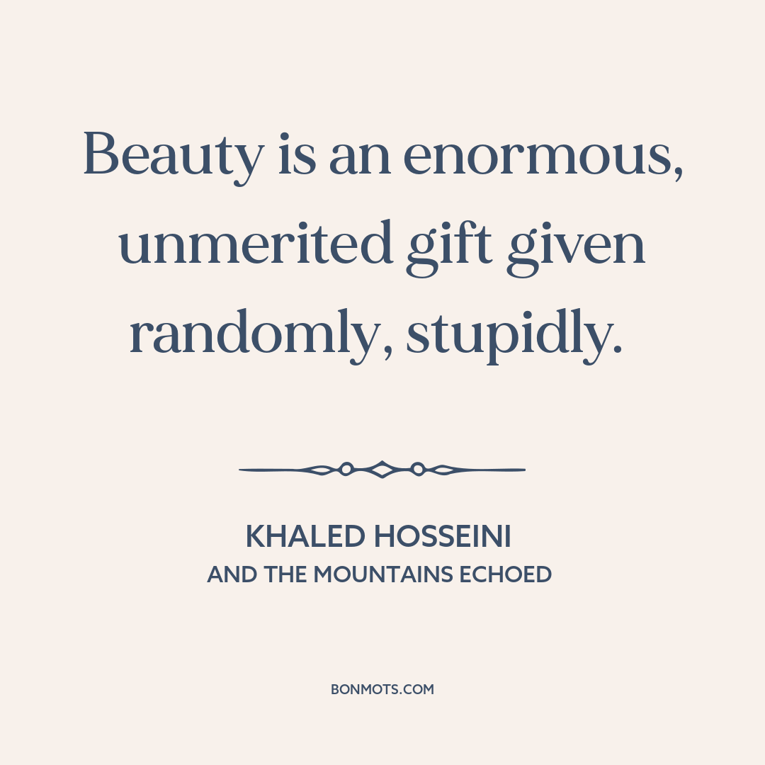 Beauty is an enormous, unmerited gift given randomly, stupidly.