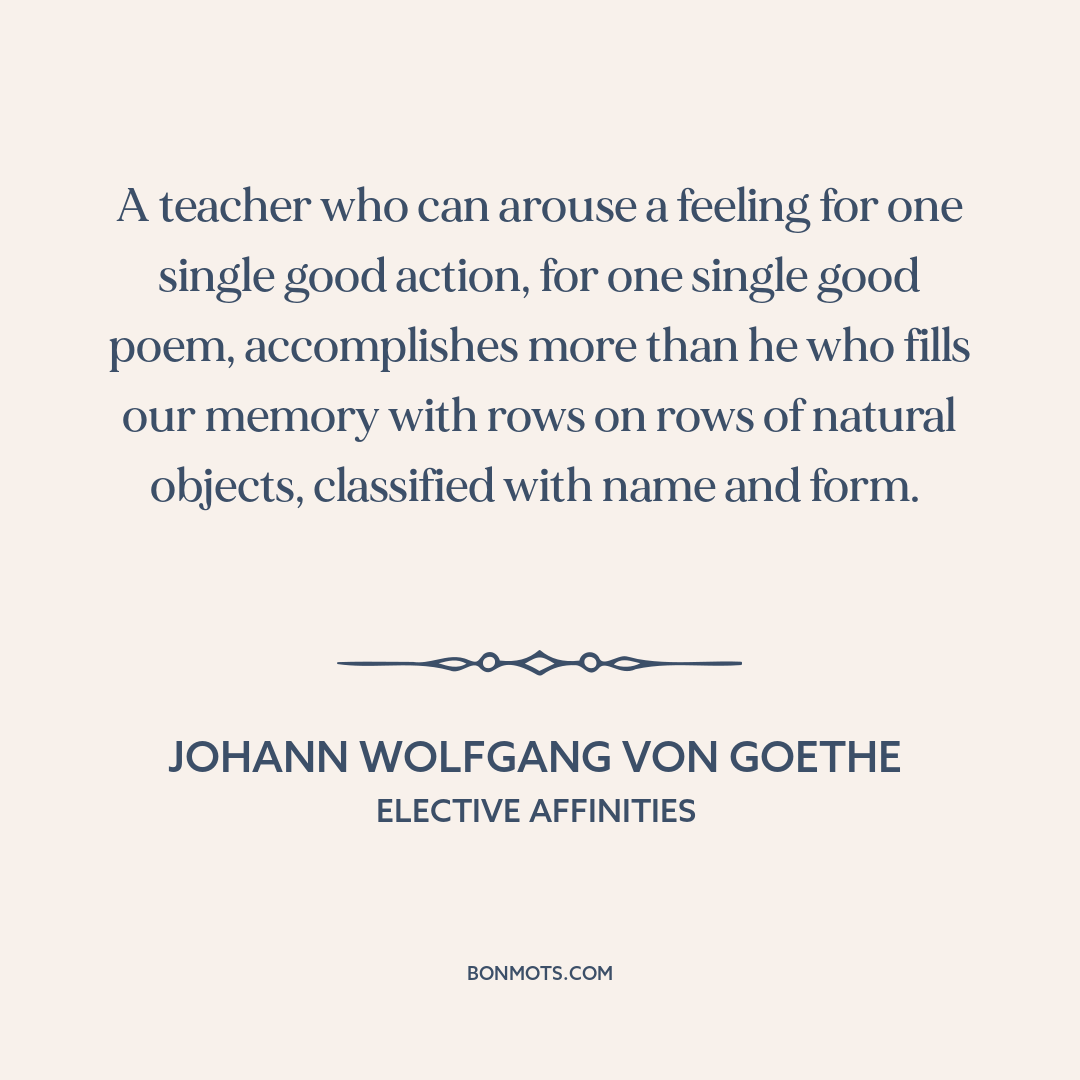 A teacher who can arouse a feeling for one single good action, for one single good poem, accomplishes more than he who fills our memory with rows on rows of natural objects, classified with name and form.