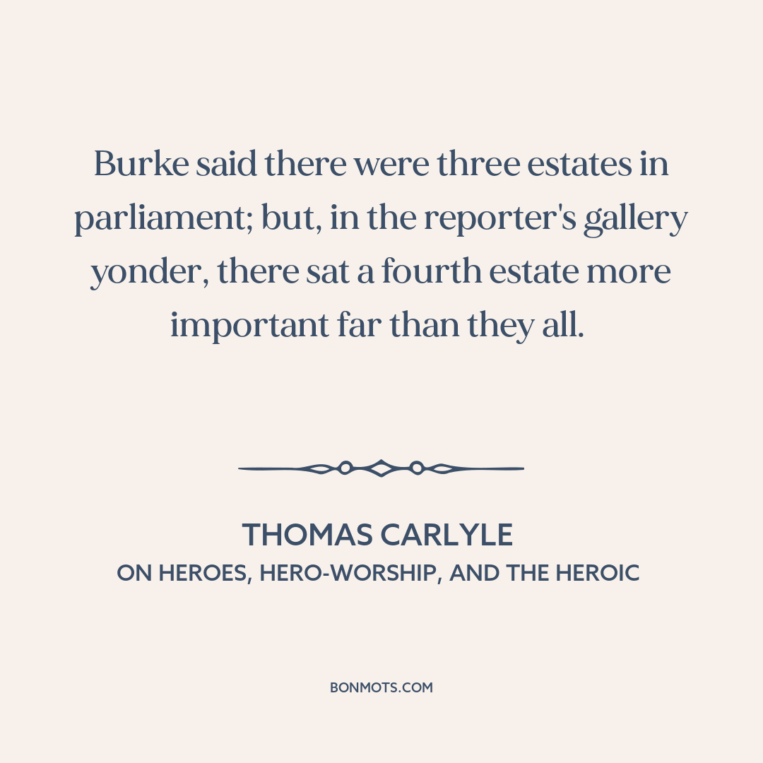 Burke said there were three estates in parliament; but, in the reporter's gallery yonder, there sat a fourth estate more important far than they all.