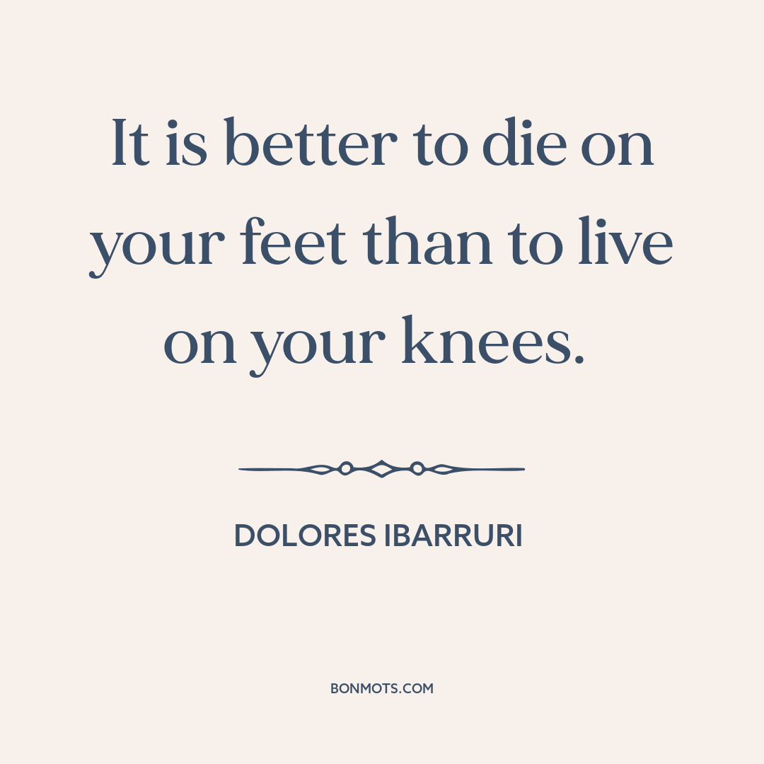 It is better to die on your feet than to live on your knees.
