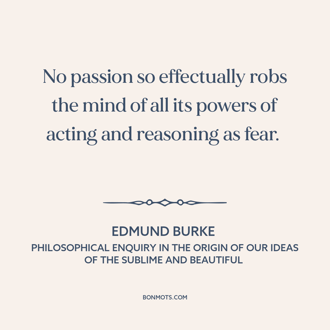 No passion so effectually robs the mind of all its powers of acting and reasoning as fear.