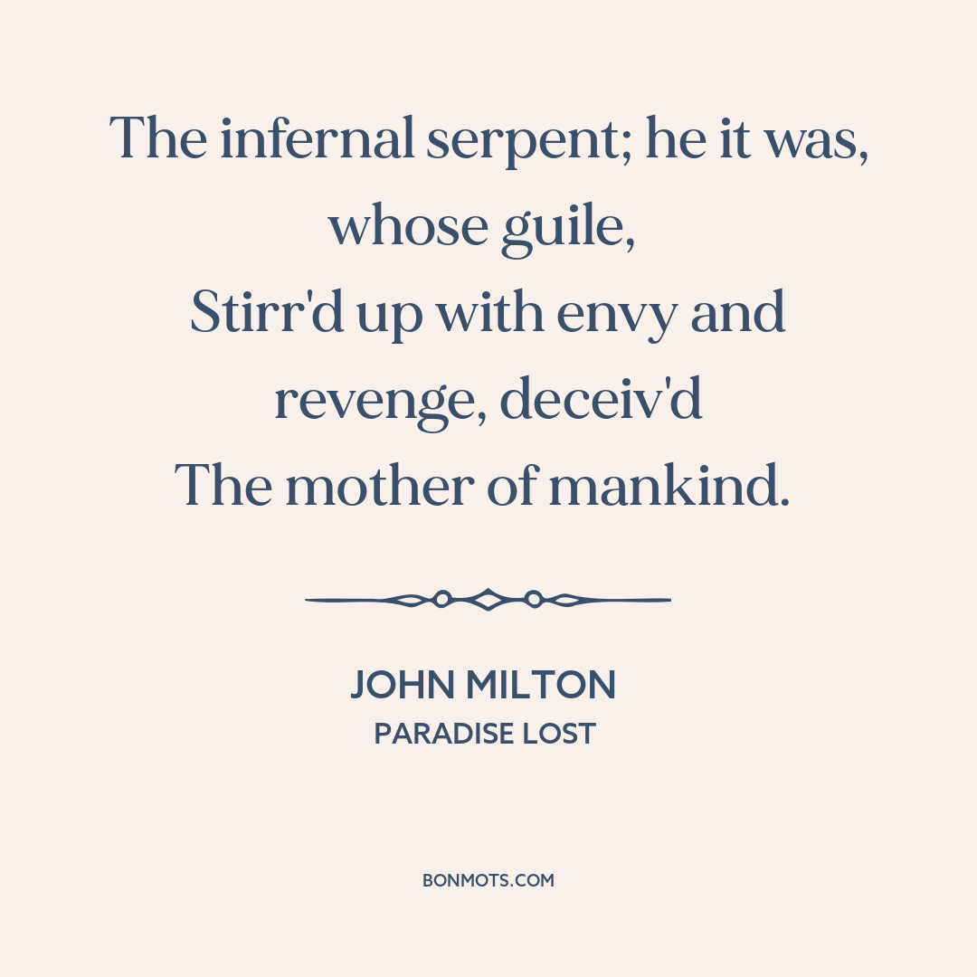The infernal serpent; he it was, whose guile,