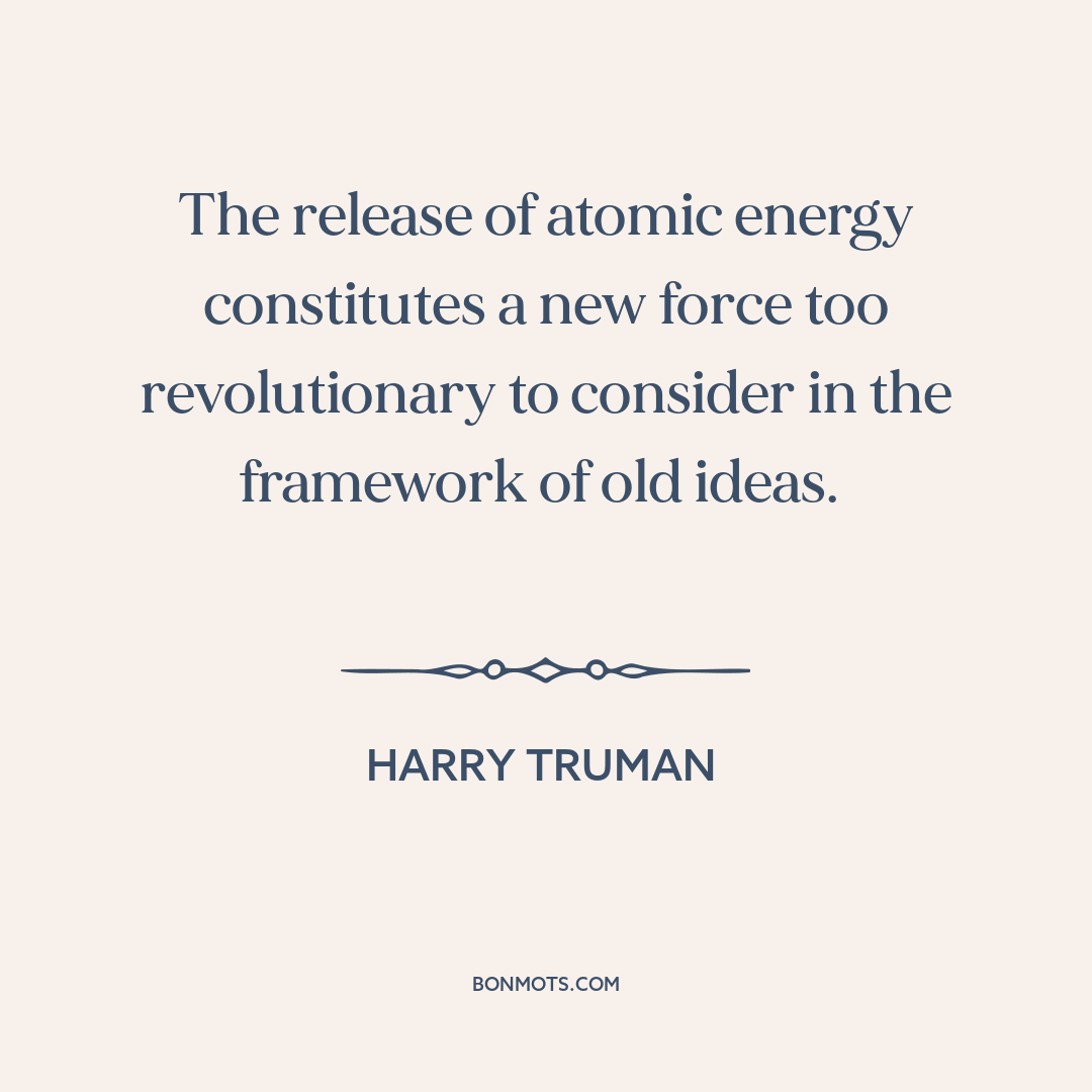 The release of atomic energy constitutes a new force too revolutionary to consider in the framework of old ideas.