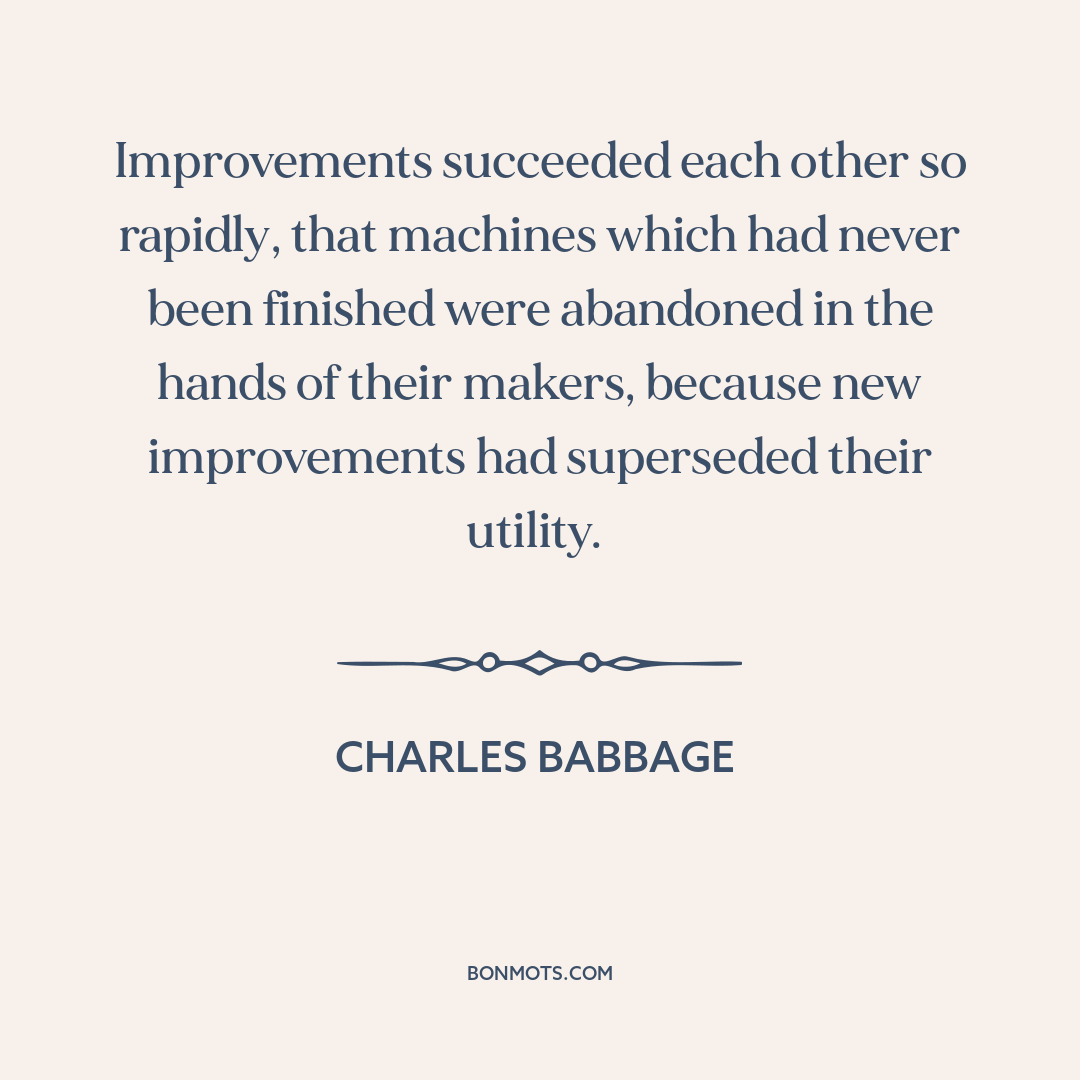 Improvements succeeded each other so rapidly, that machines which had never been finished were abandoned in the hands of their makers, because new improvements had superseded their utility.