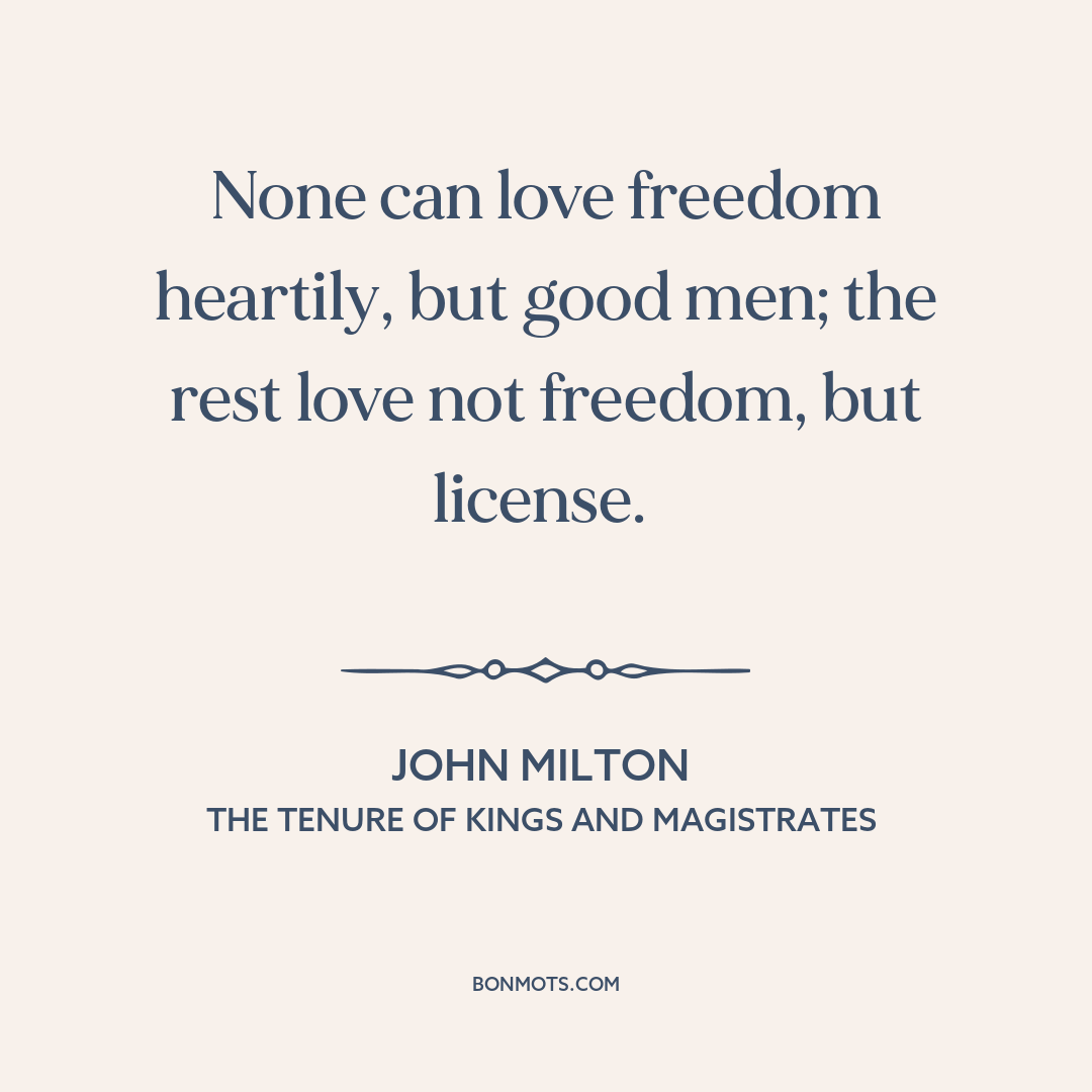 None can love freedom heartily, but good men; the rest love not freedom, but license.