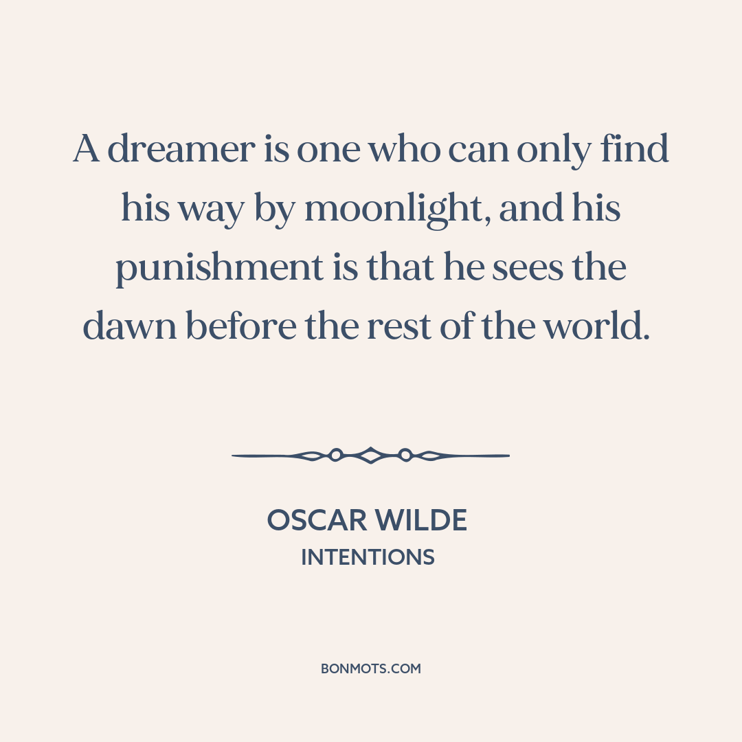 A dreamer is one who can only find his way by moonlight, and his punishment is that he sees the dawn before the rest of the world.