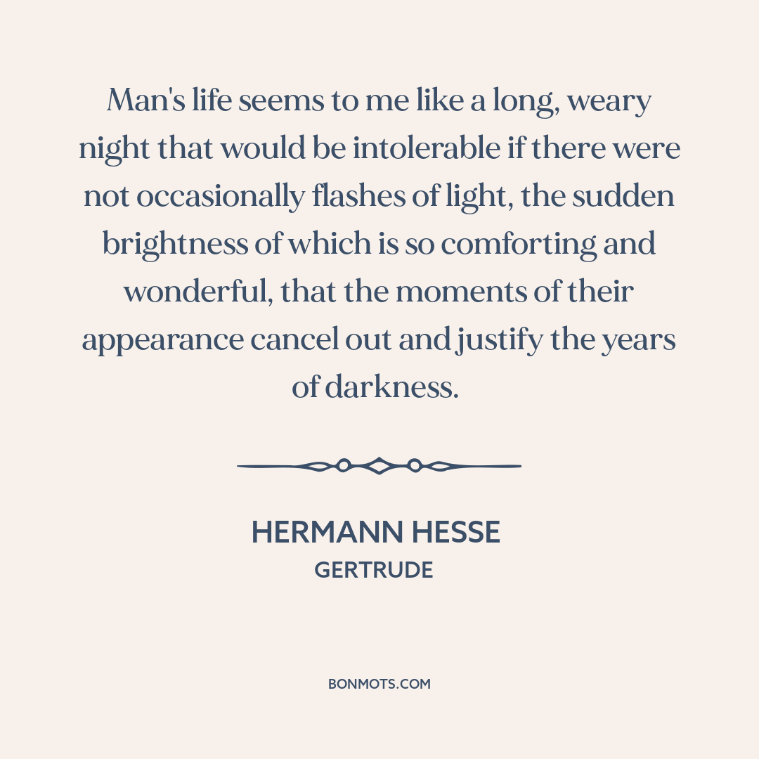 Man's life seems to me like a long, weary night that would be intolerable if there were not occasionally flashes of light, the sudden brightness of which is so comforting and wonderful, that the moments of their appearance cancel out and justify the years of darkness.