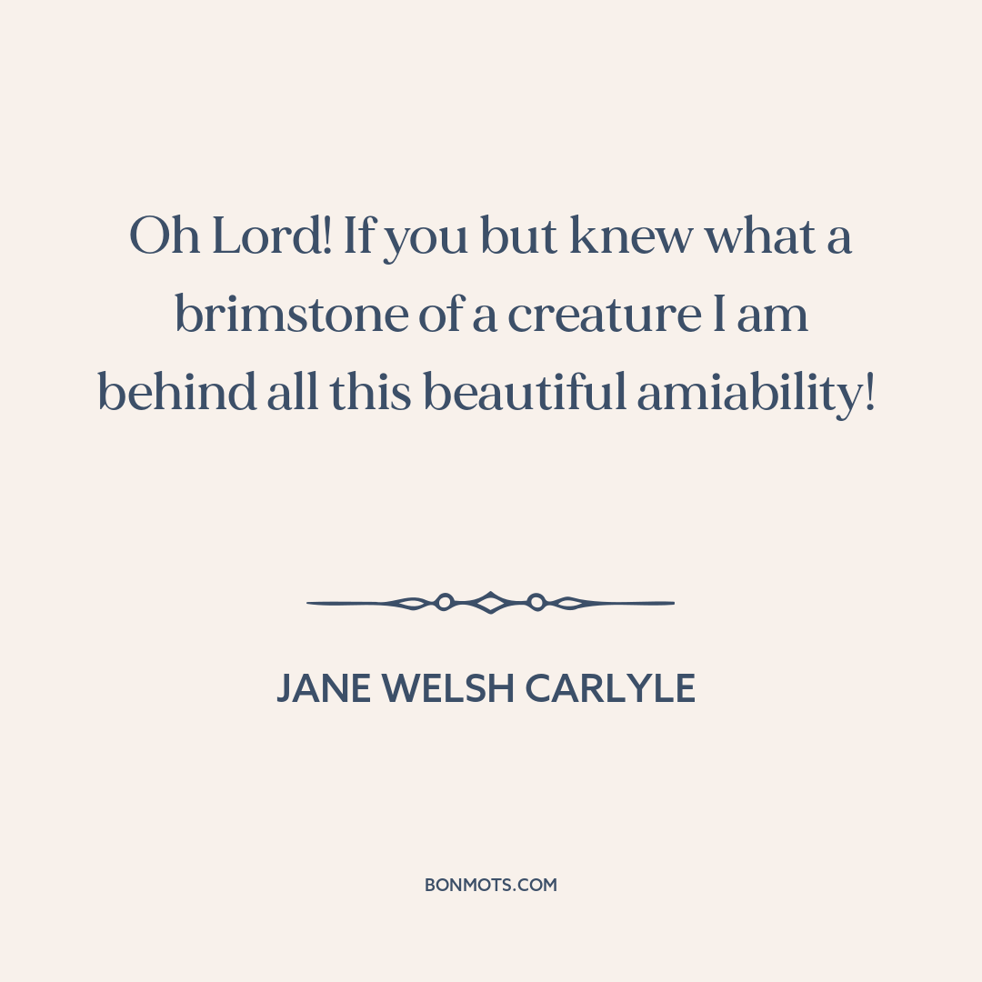 Oh Lord! If you but knew what a brimstone of a creature I am behind all this beautiful amiability!