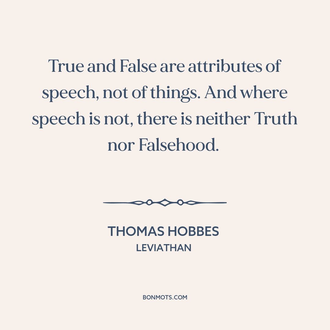 True and False are attributes of speech, not of things. And where speech is not, there is neither Truth nor Falsehood.