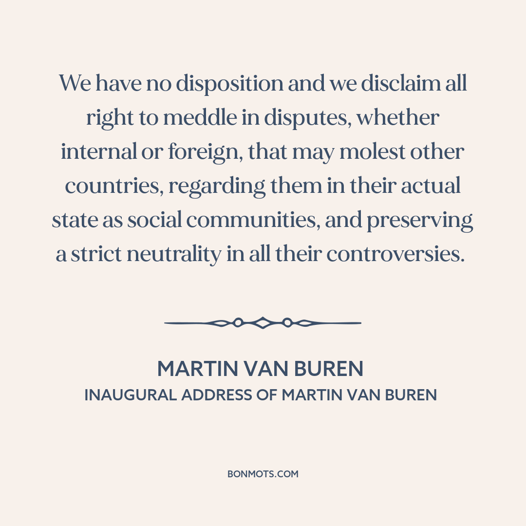 We have no disposition and we disclaim all right to meddle in disputes, whether internal or foreign, that may molest other countries, regarding them in their actual state as social communities, and preserving a strict neutrality in all their controversies.