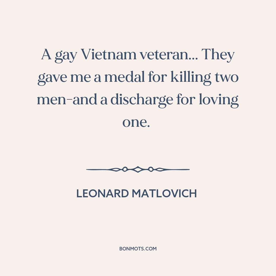 A gay Vietnam veteran... They gave me a medal for killing two men-and a discharge for loving one.