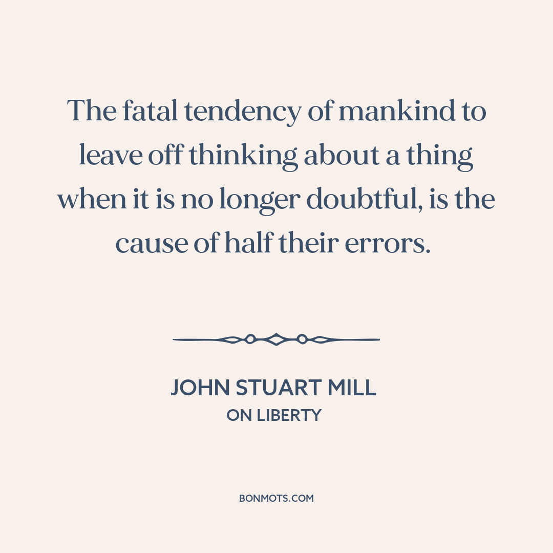 The fatal tendency of mankind to leave off thinking about a thing when it is no longer doubtful, is the cause of half their errors.