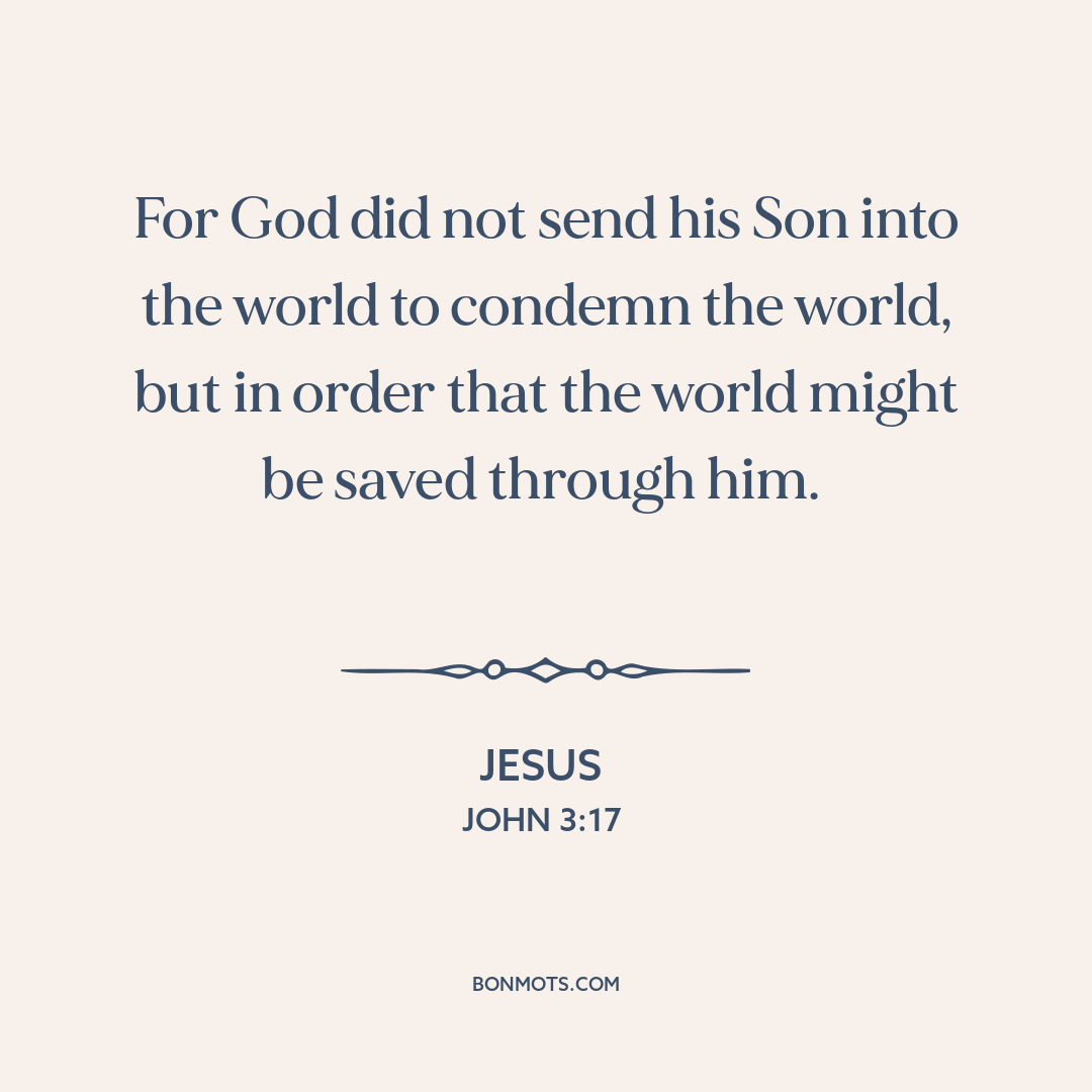 For God did not send his Son into the world to condemn the world, but in order that the world might be saved through him.