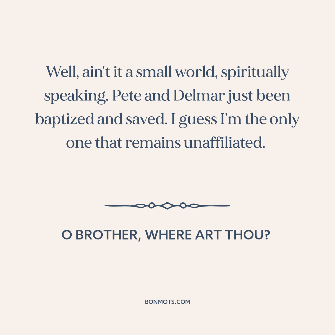 Well, ain't it a small world, spiritually speaking. Pete and Delmar just been baptized and saved. I guess I'm the only one that remains unaffiliated.