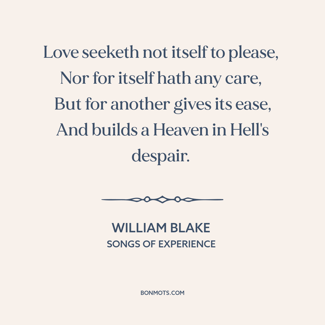 Love seeketh not itself to please,