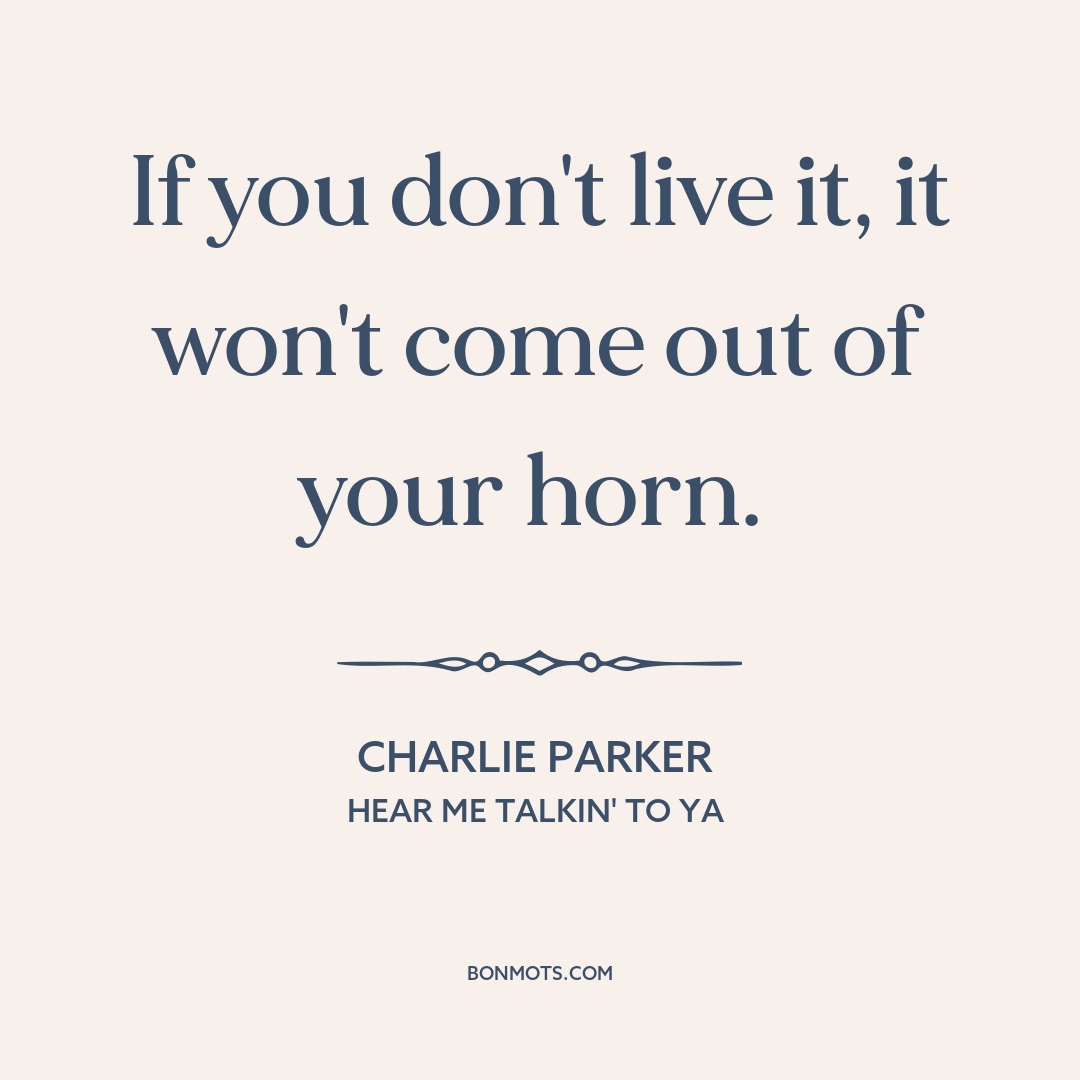 Parker, Charlie. Quoted in Hear Me Talkin' to Ya. Written by Nat Shapiro and Nat Hentoff. Rinehart & Company, 1955.