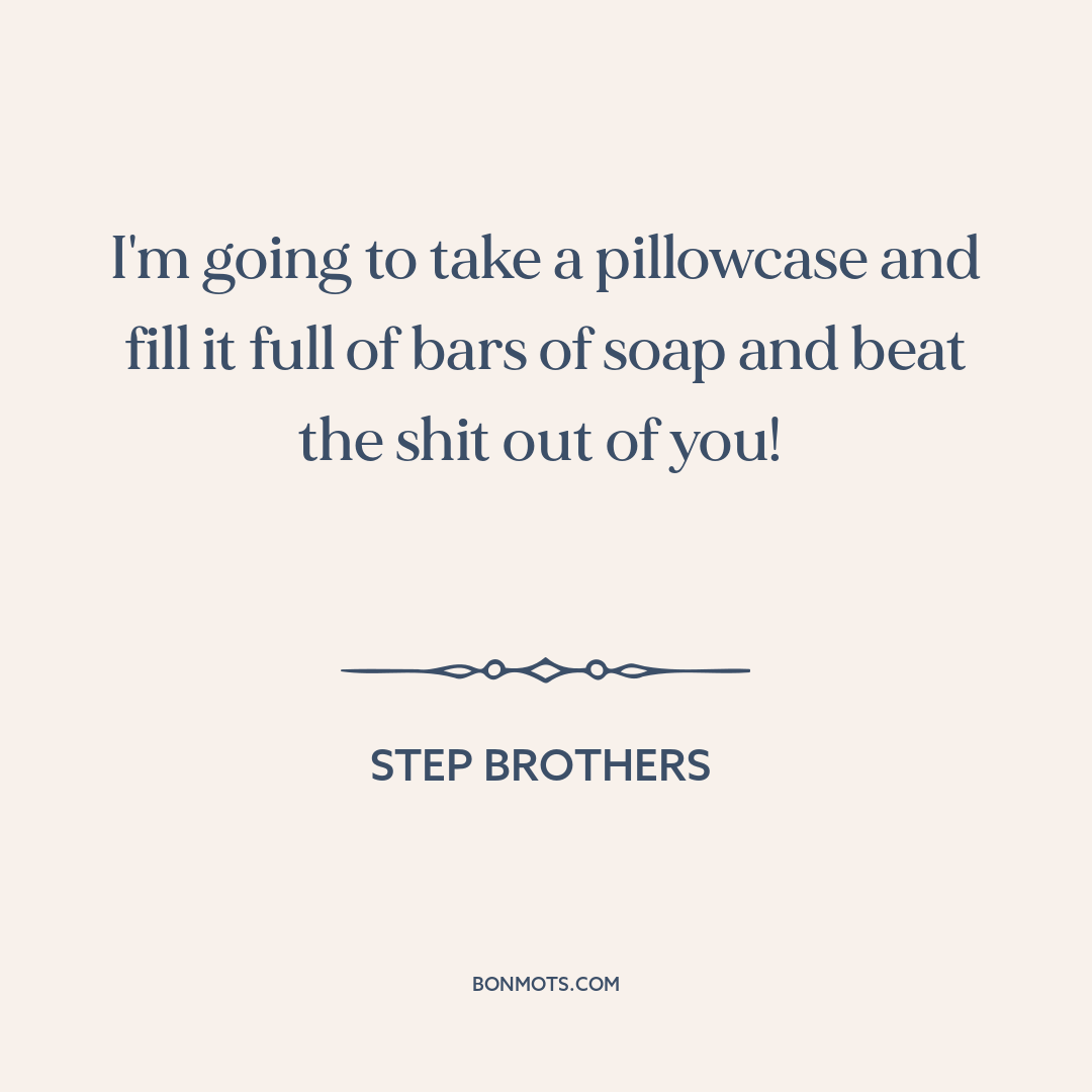 I'm going to take a pillowcase and fill it full of bars of soap and beat the shit out of you!