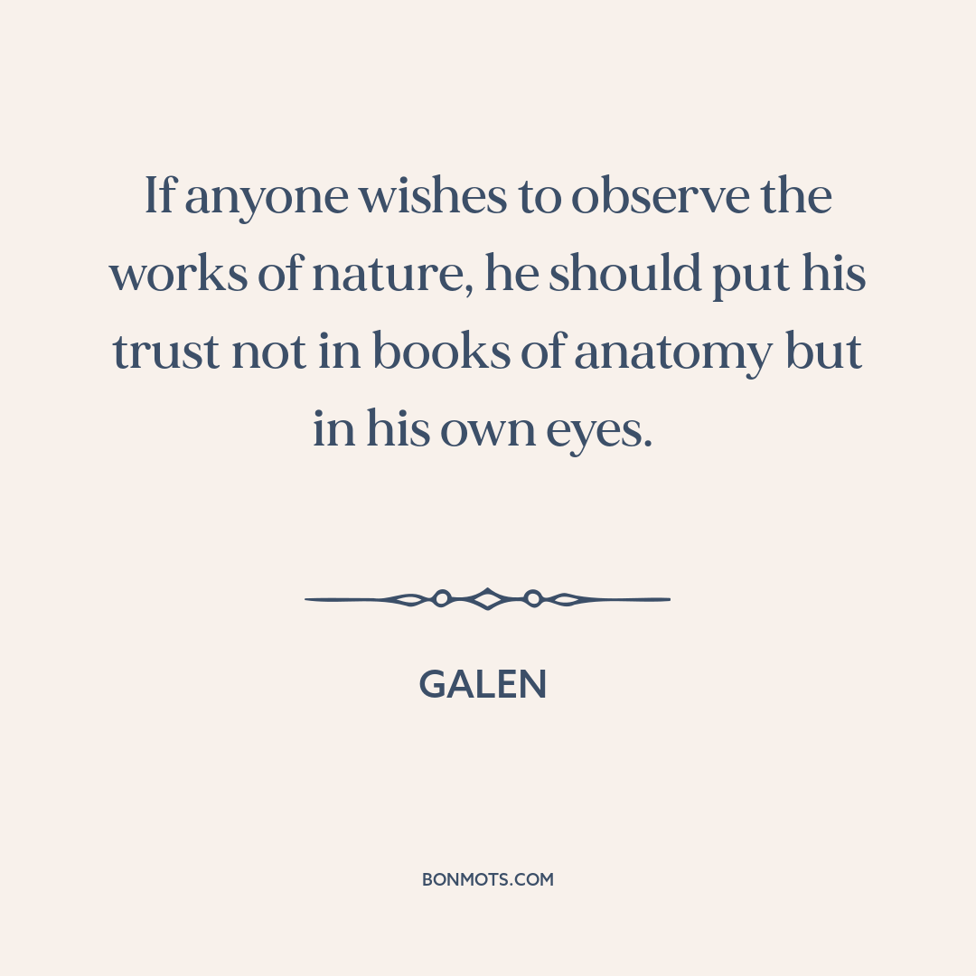If anyone wishes to observe the works of nature, he should put his trust not in books of anatomy but in his own eyes.