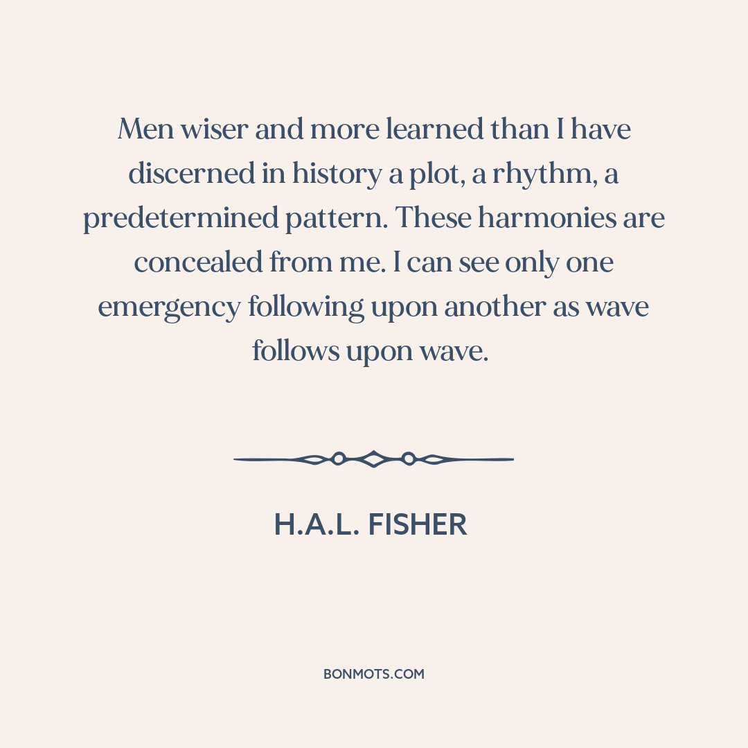 Men wiser and more learned than I have discerned in history a plot, a rhythm, a predetermined pattern. These harmonies are concealed from me. I can see only one emergency following upon another as wave follows upon wave.