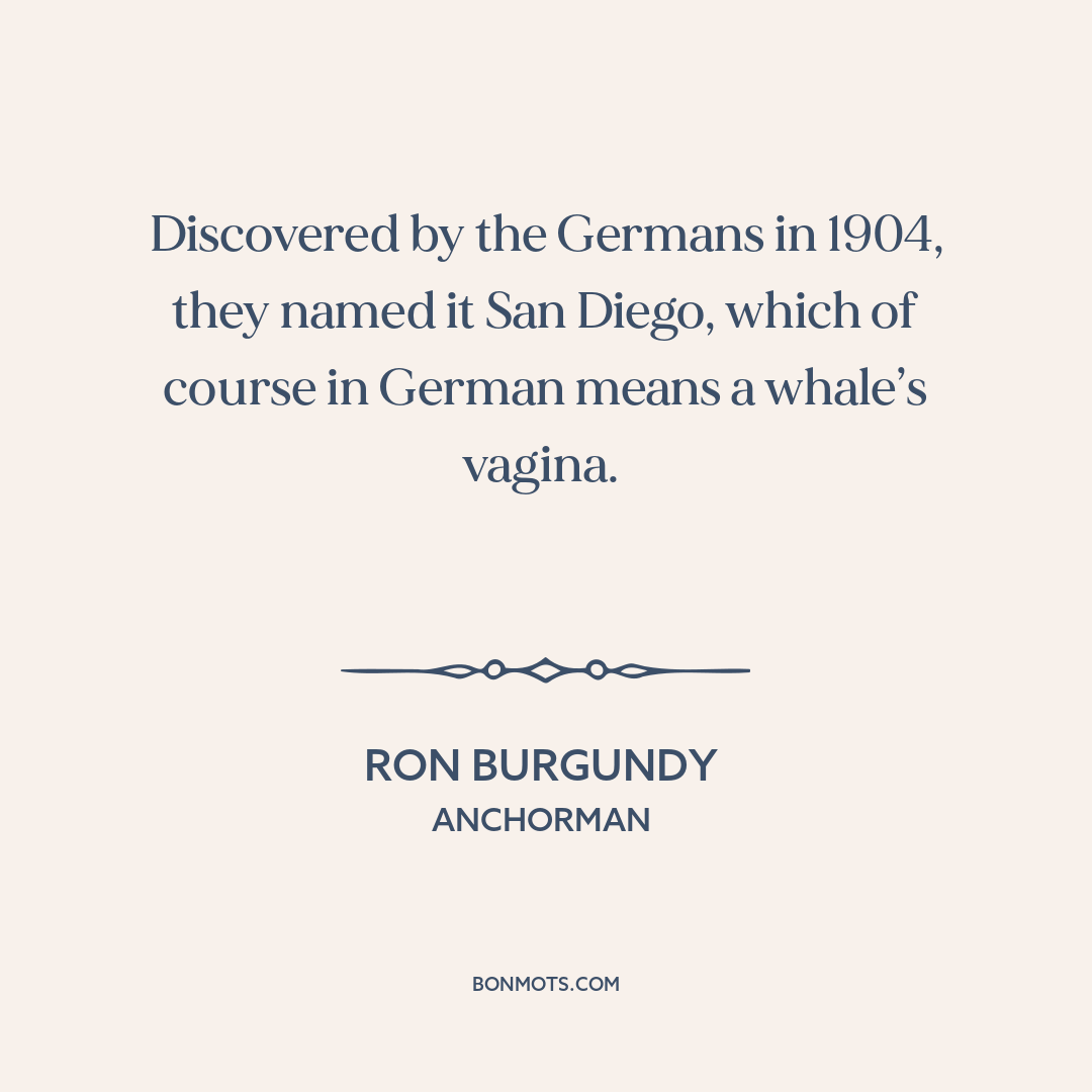 Discovered by the Germans in 1904, they named it San Diego, which of course in German means a whale’s vagina.