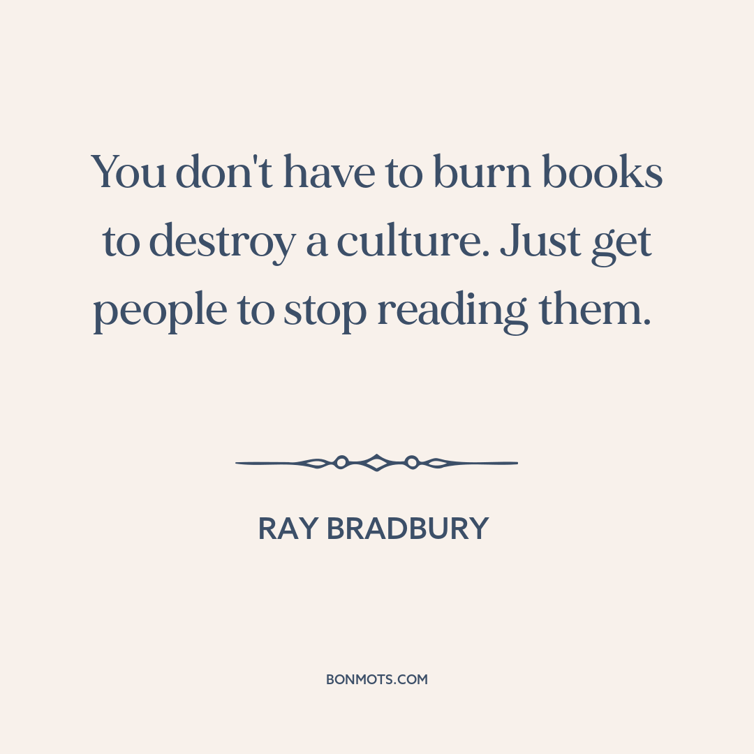 You don't have to burn books to destroy a culture. Just get people to stop reading them.