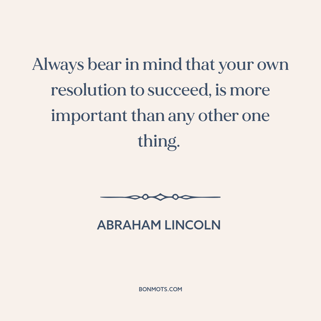 Always bear in mind that your own resolution to succeed, is more important than any other one thing.
