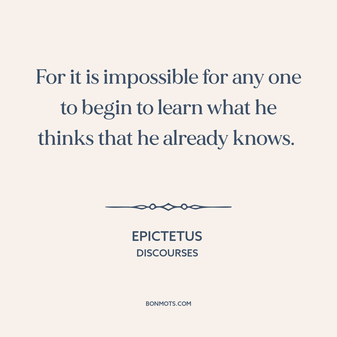 For it is impossible for any one to begin to learn what he thinks that he already knows.