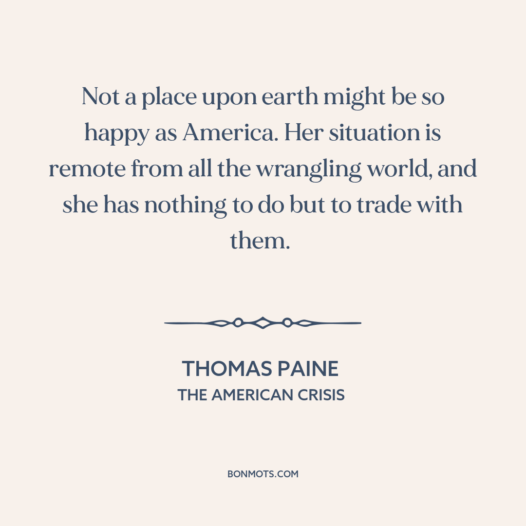 Not a place upon earth might be so happy as America. Her situation is remote from all the wrangling world, and she has nothing to do but to trade with them.