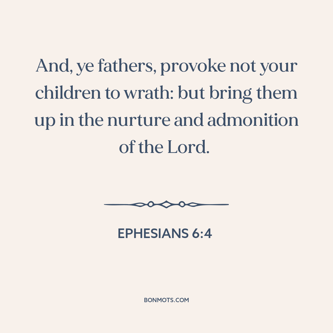 And, ye fathers, provoke not your children to wrath: but bring them up in the nurture and admonition of the Lord.