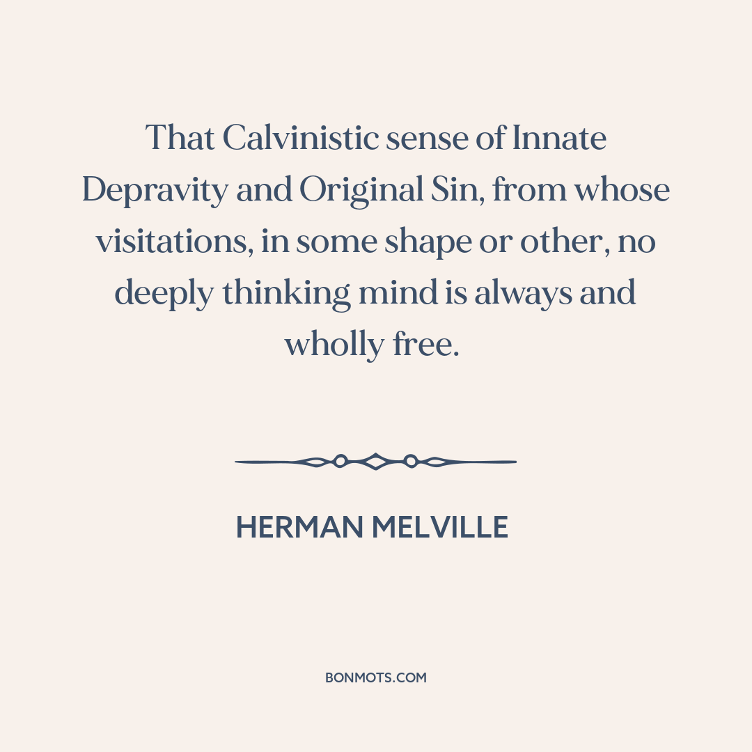 That Calvinistic sense of Innate Depravity and Original Sin, from whose visitations, in some shape or other, no deeply thinking mind is always and wholly free.