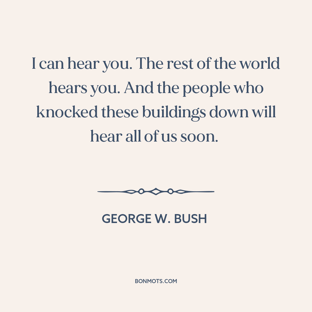 Bush, George W. Remarks at World Trade Center site. 14 Sept. 2001, New York City, NY, USA.