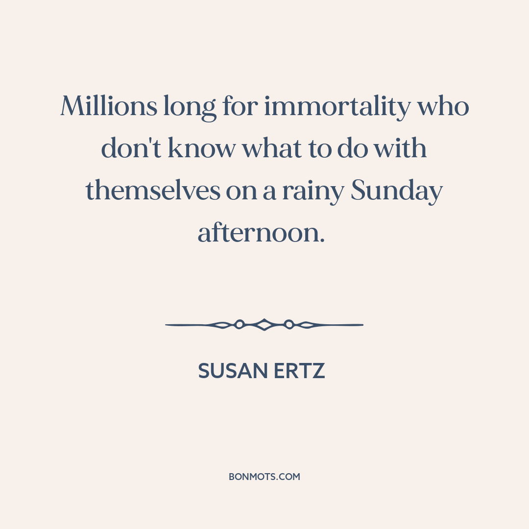Millions long for immortality who don't know what to do with themselves on a rainy Sunday afternoon.