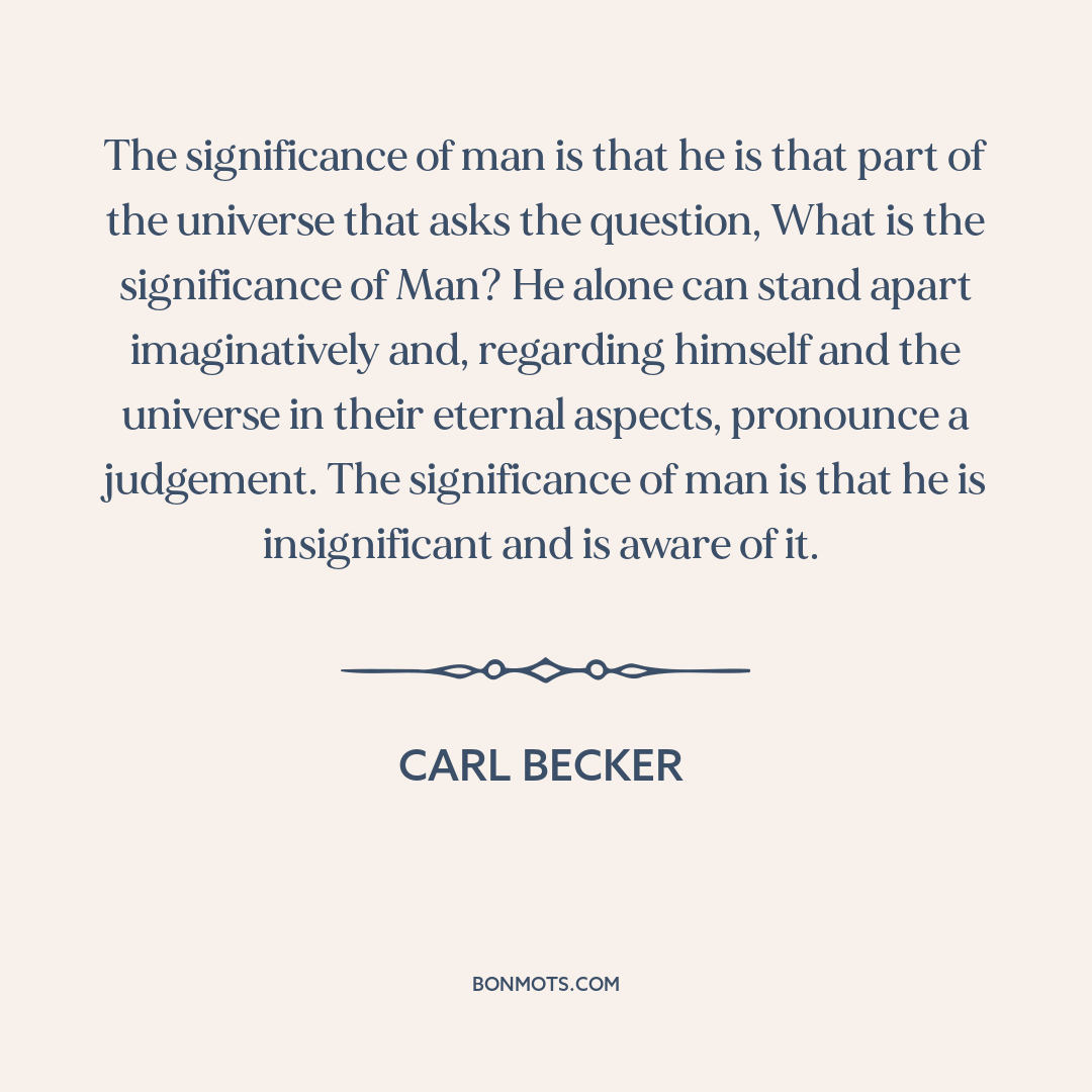 The significance of man is that he is that part of the universe that asks the question, What is the significance of Man? He alone can stand apart imaginatively and, regarding himself and the universe in their eternal aspects, pronounce a judgement. The significance of man is that he is insignificant and is aware of it.