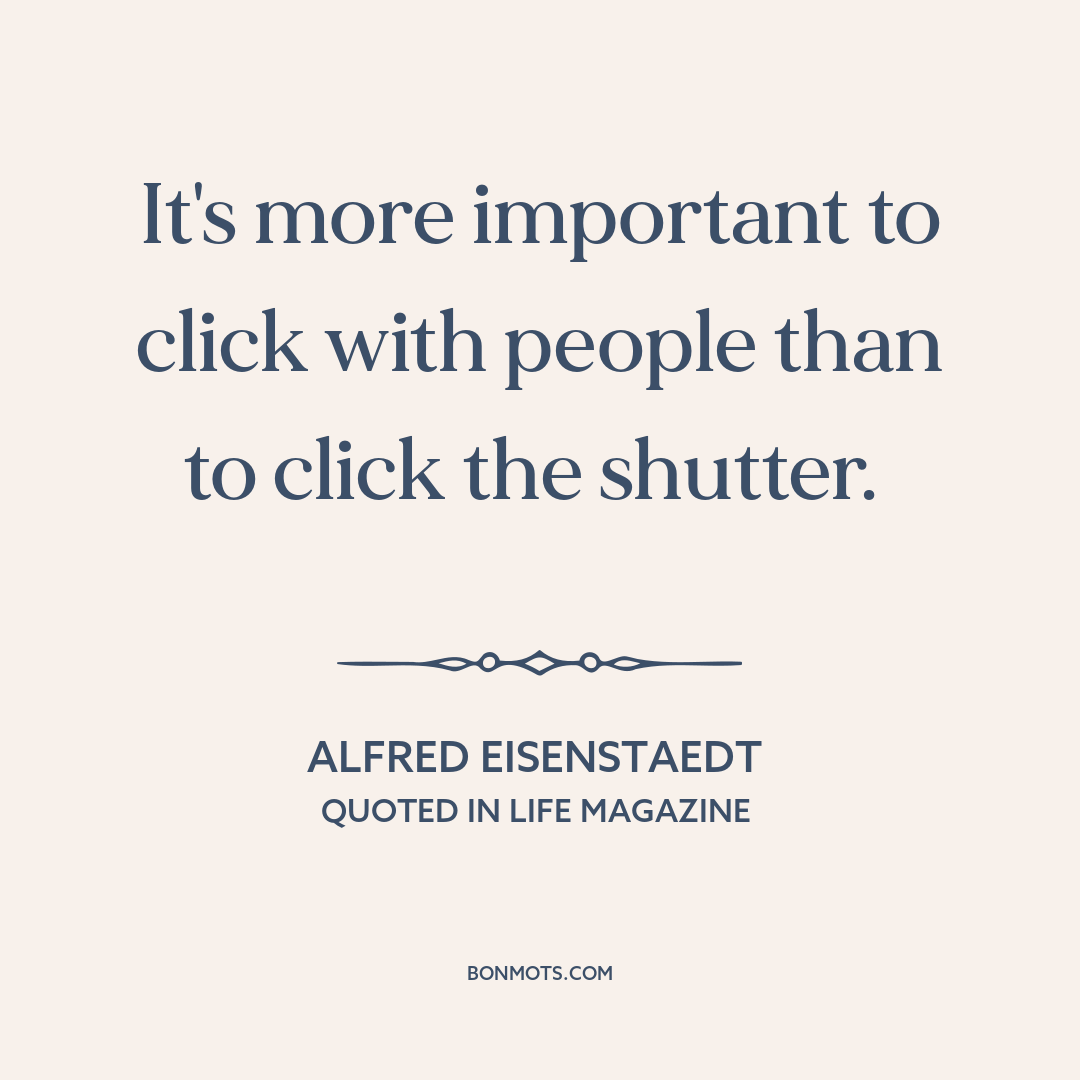 It's more important to click with people than to click the shutter.