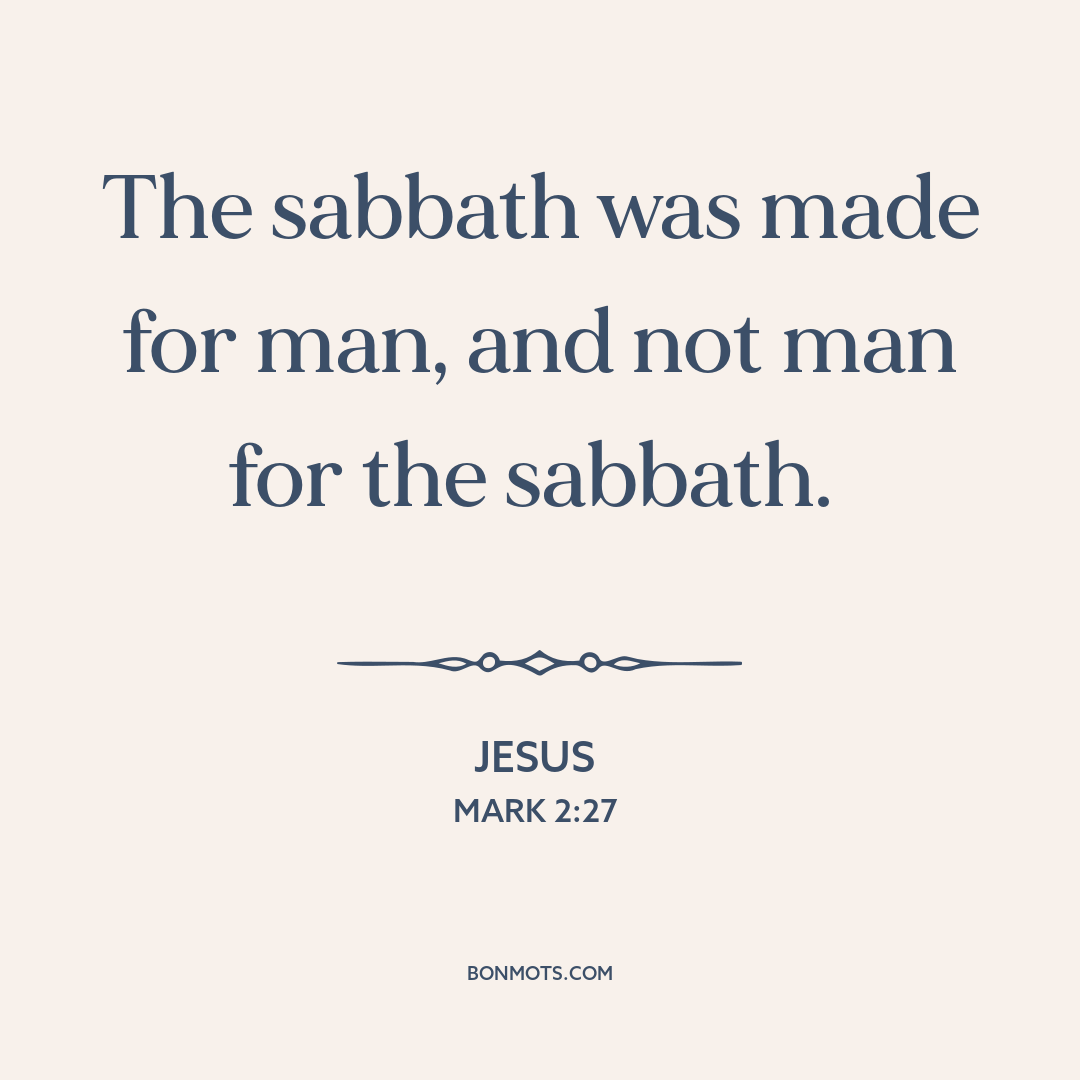 The sabbath was made for man, and not man for the sabbath.
