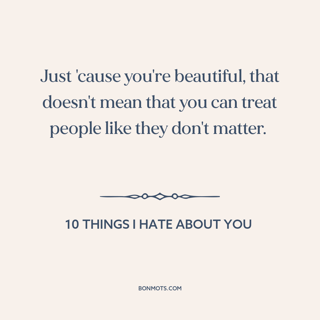 Just 'cause you're beautiful, that doesn't mean that you can treat people like they don't matter.